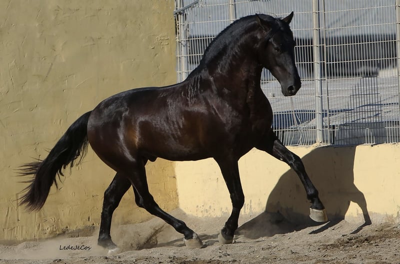 Semental de Pura Raza Española negro, con papeles completos, apto para reproductor, disponible para cubriciones. (Este caballo no está a la venta) Caballo con un excelente carácter, un modelo poderoso (selección de Doma) y barroco. Pelaje: negro. Altura: 1,75 m. Excelentes orígenes (Yeguada Militar, Granda, Miura, Escalera). Está disponible para la temporada 2025 para cubriciones en monta a mano en España (Sevilla) hasta noviembre de 2025. Estará disponible en monta a mano en nuestra cría en Francia a partir de marzo de 2026. Cubriciones en monta a mano, en inseminación artificial con semen fresco y refrigerado transportado para la temporada 2026. Tarifas 2026: - 600 Euros sin IVA (OC) + gastos técnicos. o - 900 Euros sin IVA (PRE) + gastos técnicos. Cubriciones vendidas con Garantía de Potro Vivo a 48 horas.