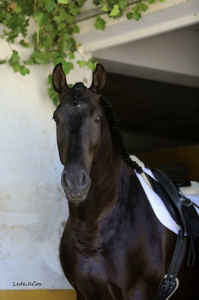 Etalon Pure Race Espagnole noir, Pleins Papiers, Apte Reproducteur, disponible pour saillies. (Ce cheval n'est pas à vendre) Cheval doté d'un excellent caractère, un modèle puissant (sélection Dressage) et baroque. Robe : noire. Taille : 1,75m Excellentes origines (Yeguada Militar, Granda, Miura, Escalera). Il est disponible pour la saison 2025 pour les saillies en monte en main en Espagne (Seville) jusqu'en Novembre 2025. Il sera disponible en monte en main à notre élevage en France à partir de Mars 2026. Saillies en monte en main, en insémination artificielle en semence fraîche et réfrigérée transportée pour la saison 2026. Tarifs 2026: - 600 Euros Hors TVA (OC) + frais techniques. ou - 900 Euros Hors TVA (PRE) + frais techniques. Saillies vendues avec Garantie Poulain Vivant à 48h.