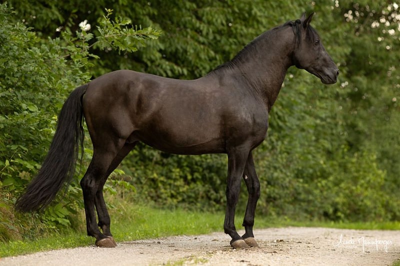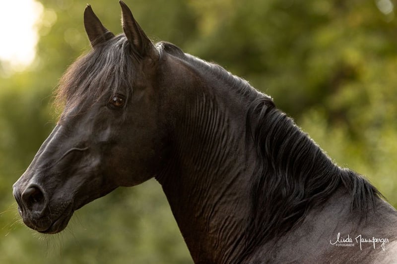 Nuestro semental PRE con licencia Dragon UCO con papeles Ancce, está disponible este año para yeguas extranjeras para aparearse con la mano. Mide 1,65, es negro y porta el gen prl. Su padre es uno de los más antiguos prl sires Urgente. Por otro lado, ha trasladado puramente a Yeguada militar. Dragon ya tiene algo de descendencia, se pueden mostrar fotos de su elegante y barroco hijo Faruco, de 4 años. Con nosotros, Dragon se encuentra en una caja de potrero entre nuestras yeguas que están en el camino en el establo abierto. Está completamente tranquilo y decente. Es fino y cuidadoso en su manejo. Sus ojos gentiles, dulces y tranquilos dicen mucho sobre su carácter. Tiene un físico fuerte y estable, como cabría esperar de un PRE barroco. Se para sobre piernas fuertes y estables, al igual que los cascos. Desafortunadamente, tuvimos que cortar su melena debido a la estera, pero ya está creciendo de nuevo muy densa y bellamente y será muy larga. Todavía tiene el pelo blanco. Si tiene más preguntas, no dude en ponerse en contacto con nosotros.