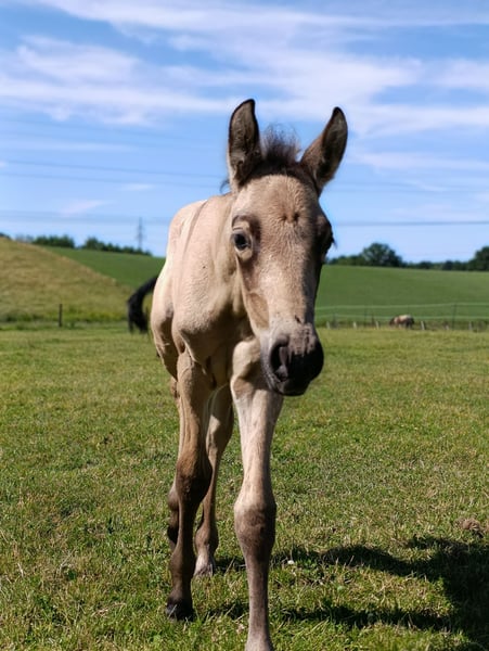 Wir bieten unser wunderschönes, typvolles Pura Raza Española Hengstfohlen "Guapo" in der edlen Farbe Buckskin entweder - zur Verfügung oder - zum Verkauf an. Geboren am 23.06.2025, ist dieser junge Hengst aktuell 4,5 Monate alt und entwickelt sich prächtig. Er überzeugt durch sein aufgeschlossenes, menschenbezogenes Wesen. Er ist äußerst neugierig, verschmust, verspielt und ausgesprochen klug. Schon jetzt zeigt er sich sehr lernfähig und genießt die tägliche Aufmerksamkeit. Beide Elterntiere (JMS Chula & S Galeon) sind vor Ort und können selbstverständlich besichtigt werden. Papiere wird er von der ANCCE erhalten. Unser Fohlen wächst artgerecht mit seiner kleinen Herde auf, kennt den täglichen Umgang und wird regelmäßig entwurmt und der Hufpflegerin vorgestellt. 💛 Was wir uns für ihn wünschen: Wir suchen für diesen besonderen jungen Hengst seinen Seelenmenschen, der die spanische Rasse liebt und zu schätzen weiß und der Lust hat diesen Rohdiamant zu schleifen. Vor allem wünschen wir ihm ein Zuhause, in dem er artgerecht mit Auslauf und Herdenanschluss leben darf, liebevoll umsorgt wird und für immer bleiben kann. Gerne dürfte der Kleine auch mit seinem neuen Besitzer bei uns wohnen. 📍 Standort: 23860 📅 Umzug in einen anderen Stall erst nach dem Absetzen (voraussichtlich ab April 2026) Bei ernsthaftem Interesse freuen wir uns über deine Nachricht und ein persönliches Kennenlernen!