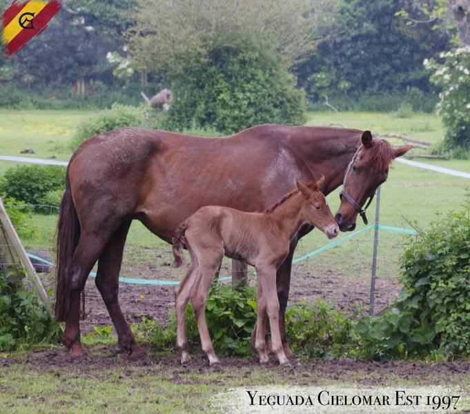 Yasira SYM D.O.B: 20/06/2016 ANCCE & BAPSH registered Graded and proven broodmare 158cm Yasira is a wonderfully bred mare having been imported as a youngster to bring new lines to our stud. With prolific stallions Impetuoso MAC, Leviton, Lebrijano III and the famous calificado stallion Utrerano VII she is an asset to bring these lines in alongside her striking colour of deep chestnut. She has produced a beautiful chestnut filly with our palomino stallion Kiko and was a wonderful mother. She is easy to cover and foals down with no troubles. Currently empty but could be covered if desired. Yasira has grown up in our herd and been handled regularly. She works well on the lunge and is good for the farrier and vet. Yasira did travel to her grading and stayed with impeccable manners overnight, she needs a few moments to load but walks up and travels well. We believe Yasira would make a wonderful ridden mare and will be backed this coming spring. Available as we need to cut down on our numbers