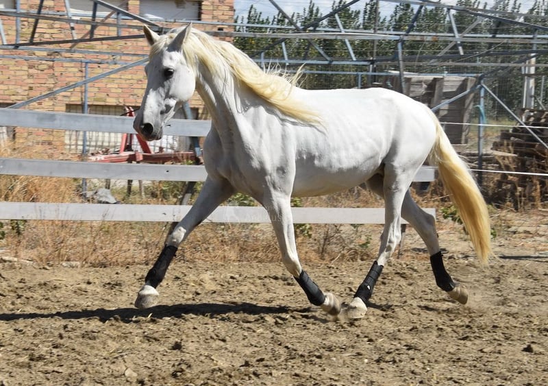 Uroczy charakter, jeźdzona i zaprzęgana w podstawowych chodach, klacz hodowlana, pochodzenie: Yeguada la Rosa, Los Retamales, posiada liczne wybitne przodki. www.elegante-andalusier.com