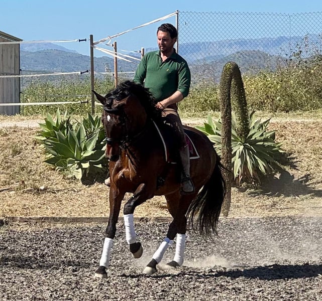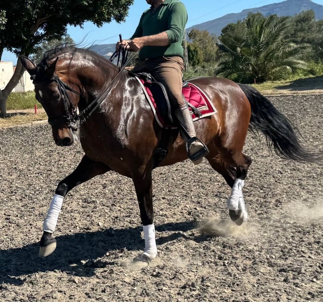 For sale is an impressive PRE mare, born in 2015. This elegant bay captivates with her charming appearance and excellent training. With a height of 163 cm, she offers the optimal size for a variety of uses, both in the dressage arena and for relaxed rides in nature. This mare stands out not only for her looks but also for her balanced character and willingness to learn. She is always motivated and shows great potential for further training and development. Location: Spain - transport can be organized worldwide.