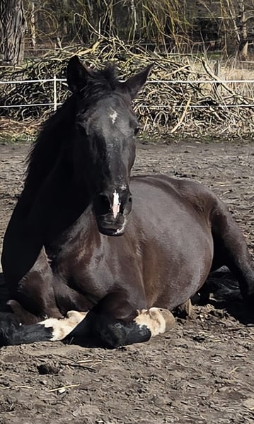 Tohni ( Tahona AGV ) ist eine gekörte PRE Stute, die Escalera gezogen ist und im modernen PRE Typ steht. Die Kompaktheit und Harmonie eines PRE sind bei ihr trotzdem noch klar zu erkennen. Der Vater von Tohni ist kein Geringerer als der Rapphengst Cacique, der die höchste Körauszeichnung eines PRE besitzt. In Tohnis Abstammung finden sich wahre Schätze wieder: Über ein leichtes Ermitano Inbreeding kommt sie gleich zweimal über den herausragenden Ganador VIII. Väterlicherseits geht es über das Gestüt Romero Benitez bis zum Aushängehengst der Yeguada Militär, Agente zurück. Mütterlicherseits führt Tohni über Kai-Kirse einen guten Schuss Boloix Blut und zusätzlich ebenfalls wieder die Yeguada Militär mit Agente als Stempelhengst. Dabei ist sicherlich nicht zu vergessen, dass die Ursprünge im Papier der Stute auf Cartujanos mit Novato und Hacendoso fußen, die zuchttechnisch hervorragende Grundlagen liefern. Neben ihren historisch bekannten Verwandten hat Tohni auch in der heutigen Zeit eine echte Berühmtheit in ihrer Familie: Sie ist eine Halbschwester zu dem mehrfachen SICAB Sieger Poeta de Susaeta. Was das Papier aussagt, findet sich auch im Charakter der Stute wieder: Tahona möchte gefallen, ist stets motiviert und sehr arbeits- und lernwillig. Dabei ist sie PRE typisch sehr sensibel und lernt schnell. Das Genie in dem Pferd möchte gelobt, verstanden und gefördert werden. Wer keinen guten Tag hat, zu viel Druck aufbaut oder sich "durchsetzen" möchte, kann unverrichteter Dinge wieder seine Koffer packen und nach Hause fahren. Vielleicht noch ein Möhrchen da lassen, denn das geht immer. Tohni wurde schonend angeritten und ist noch kein komplett fertiges Pferd. Sie beherrscht die Grundlagen und damit meine ich nicht Schritt, Trab, Galopp ( kann sie natürlich auch ), sondern eine Vielzahl von Seitengängen im Schritt sicher ( im Trab begonnen ), Rückwärts richten und korrektes Stehen. Dabei reagiert sie äußerst fein auf kleinste Hilfen. Besondere Freude hat Tohni an der Hand-und Langzügelarbeit. Hierbei macht sie eine tolle Figur. Tohni ist vierjährig nach Deutschland zum Züchter gekommen und wurde erst mit 8 Jahren angeritten, da sie vorher zwei Fohlen hatte. Für die Fohlen war sie eine wunderbare Mutter. Im Gelände ist Tohni absolut zuverlässig. Sie geht alleine und in der Gruppe ins Gelände. Sie ist jederzeit händelbar, aber dennoch nichts für jemanden, der ganz gemütlich ein wenig durch die Gegend spazieren möchte, denn sie hat ein gutes Grundtempo. Darüber hinaus ist Tahona kein Gewichtsträger und auch kein Anfängerpferd. Sie lässt sich super verladen, ist schmiedefromm und wird regelmäßig geimpft und entwurmt. Der Rhythmus zum Zähne machen hat sich auf ca. alle zwei Jahre eingependelt. Tohni geht barhuf und brauchte noch nie Eisen. Sie hatte keine Krankheiten oder Verletzungen, seit sie in meinem Besitz ist ( 7 Jahre ). Aktuell steht Tohni im Offenstall in einer Stutenherde und kommt nur bei ganz schlechtem Wetter in die Box. Auch in einer gemischten Herde mit ruhigen Wallachen kam sie gut zurecht. Sie ist eher rangniedrig. Sie sollte sich in ihrer zukünftigen Haltung viel bewegen können. Tohnis Zubehör ist nicht im Preis enthalten, kann aber mit erworben werden: Zum Beispiel Sattel: Deuber Ronda Deluxe S2 mit Zalea. Für ein Probereiten berechne ich 50€, die natürlich bei Übernahme des Pferdes mit dem Kaufpreis verrechnet werden.