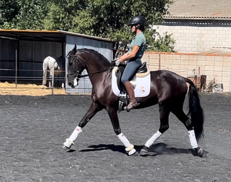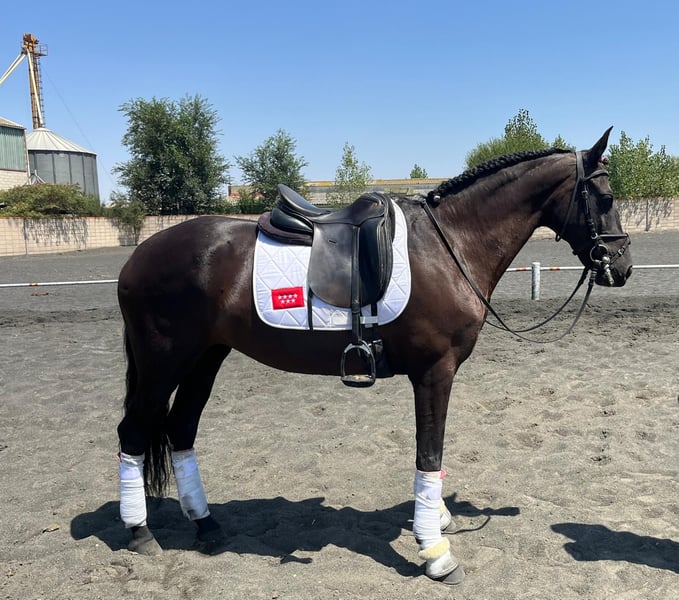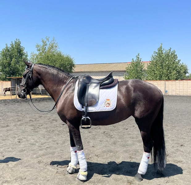 Hauptmerkmale: - Eingetragen bei ANCCE - Geburtsjahr: 2012 - Farbe: Schwarz - Größe: 1,62 m - Spezialisiert auf klassische Dressur, aber problemlos auch im Gelände einsetzbar - Erfahrung in nationalen und regionalen Wettkämpfen Diese wunderschöne Stute vereint Schönheit, Charakter und Dressurfähigkeiten – perfekt für Reiter, die eine zuverlässige und erfahrene Partnerin suchen. Ideal für Turniere oder um sich weiterhin im Reitsport zu entwickeln. Derzeit befindet sie sich auf Niveau 4 in der Dressur und ist in Piaffe, Passage sowie fliegende Wechsel eingearbeitet. Zudem ist sie in den ersten Schritten der Piaffe-Ausbildung. Für weitere Informationen und Details zögern Sie nicht, uns zu kontaktieren. Verpassen Sie nicht die Gelegenheit, dieses hervorragende Exemplar zu erwerben!