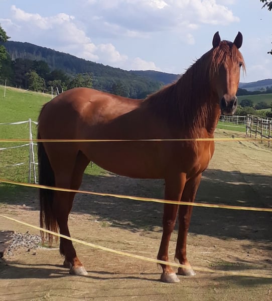 Sevilla est une jument qu’on ne laisserait presque plus partir. Pour des raisons de santé, je n’ai malheureusement pas d’autre choix, c’est pourquoi elle cherche une nouvelle famille qui lui correspond parfaitement. Elle ne passe pas inaperçue, elle est magnifique et impose une présence impressionnante. Elle possède de très bonnes origines et est une petite-fille d’Evento. C’est une PRE typique, très proche de l’humain, affectueuse, et elle développe un lien très profond avec son propriétaire. Idéalement, elle aimerait vivre directement à la maison et faire partie de la famille. Ces dernières années, elle a été exclusivement monté en terrain varié et elle est ici parfaitement sûre, aussi bien seule qu’en groupe. Elle serait une monture idéale pour la randonnée et adore l’eau. Sevilla a eu une magnifique pouliche. Elle est en Allemagne depuis quelques années et a toujours été bien entourée en Espagne également, sans expérience négative. Elle est en bonne santé, mais nécessite du foin de haute qualité, sinon elle commence à tousser. Une gestion adaptée aux allergies serait certainement bénéfique pour elle. Elle vit actuellement dans un grand paddock en liberté avec un abri, où elle bénéficie de foin sec 24/7, ce avec succès. En été, elle passe tout le temps à pâturer dans le pré. Sevilla cherche une nouvelle amie pour la vie et quelqu’un prêt à vraiment s’engager avec elle, à communiquer avec finesse. Un cheval de rêve absolu.
