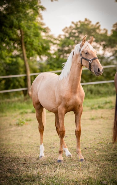 Available, Olaya, born on May 30, 2025 A stunning purebred Spanish Palomino filly, just one year old. Very friendly and affectionate towards people, Olaya enjoys being handled. She already shows a confident personality, with a lovely temperament—gentle and respectful. Physically built for sport, she is very feminine, with an expressive head and already elegant gaits. She currently measures approximately 1.43 meters at the withers. In terms of handling, Olaya is accustomed to wearing a halter, leading on a longe line, and is familiar with the farrier. She also knows the horse trailer. She will of course leave with all her vaccinations, deworming, and hoof care up to date. Visible in Sarthe, France. Please feel free to contact us for more information.