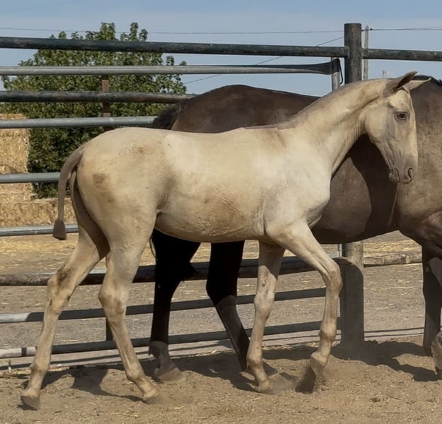 Isabela PRE Fohlen Steht kurz davor, 5 Monate alt zu werden. Vater Isabela und Mutter mit schwarzem Fell und dem Gen Prl. Der Versand kann weltweit organisiert werden. Für weitere Informationen kontaktieren Sie bitte +34 603772947.