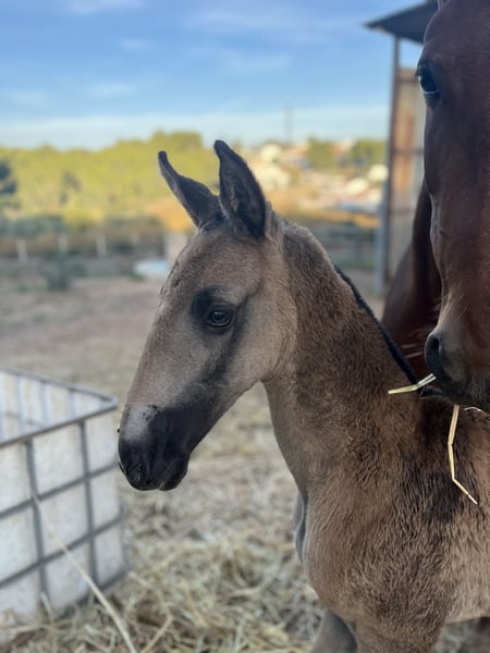 Potra PRE brahma, Tochter des berühmten Hengstes Odín Ónix. Sie trägt eine kleine Cr und E Veranlagung, was bedeutet, dass sie alle Farbschläge vererben kann. Vom Vaterseite ist sie eine Tochter von Odín Ónix, mit einer Stockmaß von 1,75 m, und Enkelin des großen Tiziano III. Von der Mutterseite ist Solitaria XXXVI ihre Mutter, mit einer Höhe von 1,71 m, abstammend von den besten Linien spanischer Pferde wie Remache XIII und Yaco II. Dieses Tier besitzt das Potenzial für vielfältige Einsatzbereiche wie Zucht, Dressur und Reitkunst sowie für Pferdeshows.