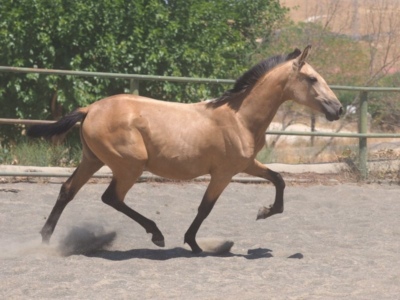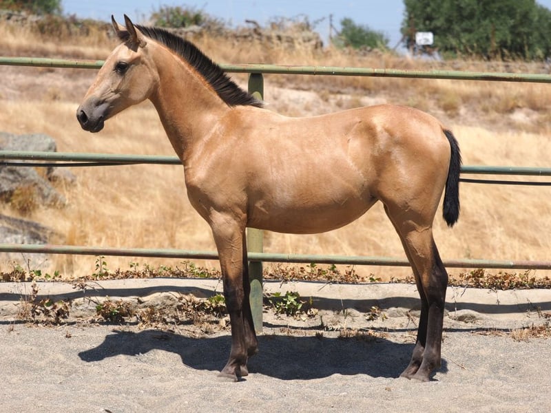 We present a stunning PRE filly born in 2024, with a bright future ahead. She is currently approximately 150 cm tall, making her ideal for future sporting or breeding activities. Her lineage is exceptional: her father, Voraz AC, is a pearl-colored stallion with a PRL of 170 cm, known for his elegance, movement, and balanced temperament. The mother, Azahara, is a black mare measuring 164 cm, contributing strength, beauty, and a prominent topline to this filly. From a young age, she has demonstrated excellent movement characterized by grace, flexibility, and rhythm—qualities that make her suitable for disciplines like dressage or even high-quality breeding. Her face is very attractive, with a sweet and expressive expression reflecting her calm and confident character. She also has a well-proportioned neck and a harmonious topline, indicating good conformation and potential for development in various equestrian fields. This PRE filly stands out not only for her physical beauty but also for her balanced character and willingness to learn. She combines the high genetic quality of her parents with a promising appearance, making her ideal for breeders seeking a high-level reproductive future or riders looking for a reliable partner with great sporting potential. An unmissable opportunity for those who appreciate beauty, quality, and talent in a PRE horse.