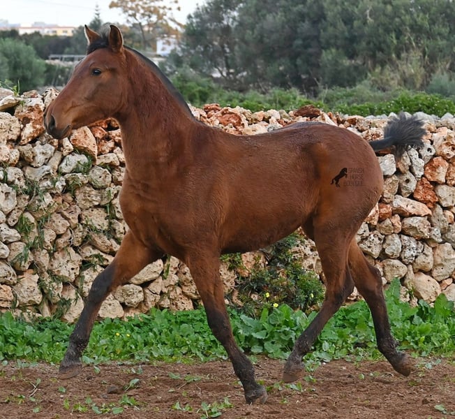 Diese 2024 geborene PRE Stute (Andalusier mit Rassenachweis der Ancce), ist jetzt schon eine atemberaubende Stute! Trotz rutschigem Untergrund, zeigt sie ganz stolz, wie viel Bewegung in ihr steckt und wie geschmeidig und flexibel sie ist. Ihr Vater ist mehrfach prämiert, sowohl für die gute Bewegung, als auch morfologisch (Zuchtschau) und ohne Zweifel hat er dieses Talent bestens vererbt. Sie wächst in der Herdenhaltung 24/7 auf, was sie sehr robust macht und sie ist bestens sozialisiert. Dank der Regensaison auf Menorca, auch etwas von Matsch paniert ;) In ihrer Abstammung finden wir den Mejorante Hengst Barquito von Guardiola, sowie den Mejorante Hengst Hebreo XIX von Escalera. Sie hat eine klassische Mischung von Guardiola und Escalera in ihren Blutlinien, was für das klassich barocke Exterieur und den feinen, menschenfreundlichen Charakter sorgt. Ihr zu erwartendes Endmaß liegt um die 160cm und dank ihrer Flexibilität und Wendigkeit, wird sie nicht nur für die Dressur, sondern auch für die Working Equitation sehr interessant werden. Solltest du sie erst später holen wollen, so kann gerne ein Aufzuchtsplatz für sie organisiert werden. Videos und Abstammung gerne auf Anfrage. Ihr Standort ist Menorca. Gerne organisiere ich vor Ort eine Fohlen-AKU,Transport oder auch ihre Reise, solltest du persönlich zum Anschauen kommen. Details dazu gerne auf meiner Seite oder im Gespräch. Saludos aus Spanien