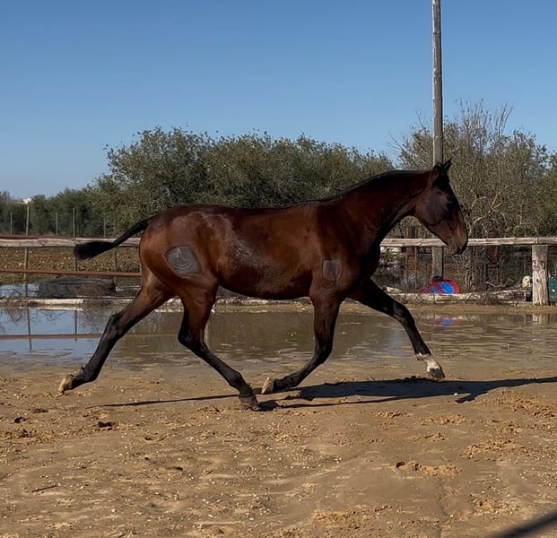 Diese wunderschöne Stute besticht durch ihr außergewöhnlich gutes Gangwerk. Mit ihren zwei Jahren, weiß sie sich zu bewegen. Das wird eine tolle Stute, die sich für die Dressur oder auch für die Zucht empfiehlt. Im Umgang ist brav und gut erzogen. Ist halfterführig und kennt auch schon das Putzen. Ihre Abstammung ist vom Feinsten. Ihr Vater ist der große Rappe Nelson (Yeguada Militar), sein Vater Gerente geht auf Remache zurück. Ihre Mutter vereint Candau Blut, Esclaera und den bewegungsstarke Vinatero III Das Pferd wird im Auftrag verkauft. Er kann gerne bei uns noch in Beritt bleiben. Eine AKU wird kurzfristig organisiert. Internationaler Transport.