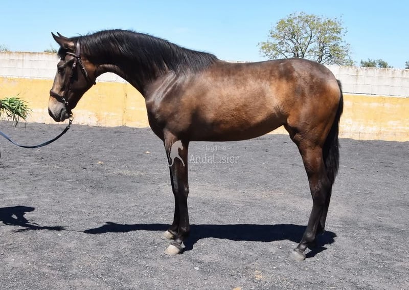 lovely character, curious, unbroken, kept outside with other mares, special color, PRE buckskin with papers, good movements and pedigree, lineage: Alfredo Gala, Pablo Perez Jimenez, Castillo Villafranca, Andres Holgado Dianes, great-grandfather Mariscal de Torre and great-great-grandfather Remache XIII are qualified www.elegante-andalusier.com