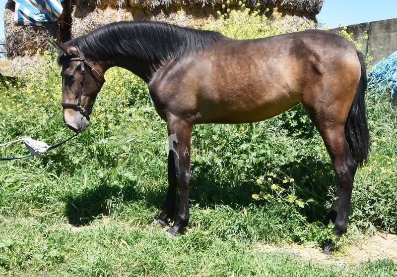 cher caractère, curieux, brut, est dehors avec d'autres juments, couleur spéciale, fauve PRE avec papiers, bonnes allures et origines, origines : Alfredo Gala, Pablo Perez Jimenez, Castillo Villafranca, Andres Holgado Dianes, Uropa Mariscal de Torre et Ururopa Remache XIII sont qualifiés www.elegante-andalusier.com