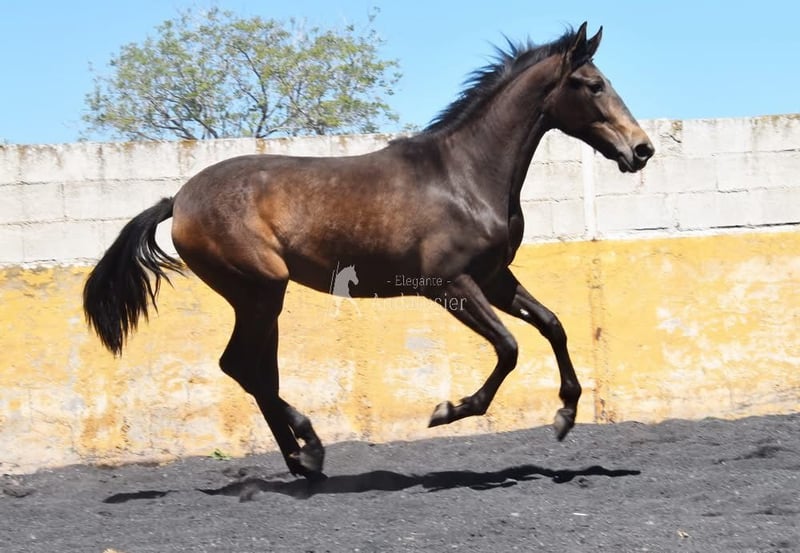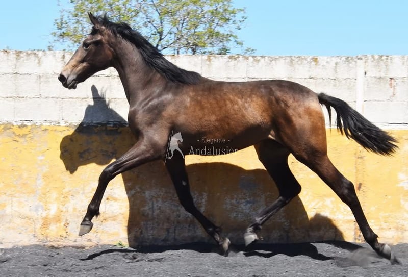 uroczy charakter, ciekawski, surowy, stoi na zewnątrz z matką i innymi klaczami i źrebiętami, wyjątkowe umaszczenie, PRE dun z papierami, dobry ruch i rodowód, rodowód: Alfredo Gala, Pablo Perez Jimenez, Castillo Villafranca, Andres Holgado Dianes, Uropa Mariscal de Torre i Ururopa Remache XIII są kwalifikowane. www.elegante-andalusier.com