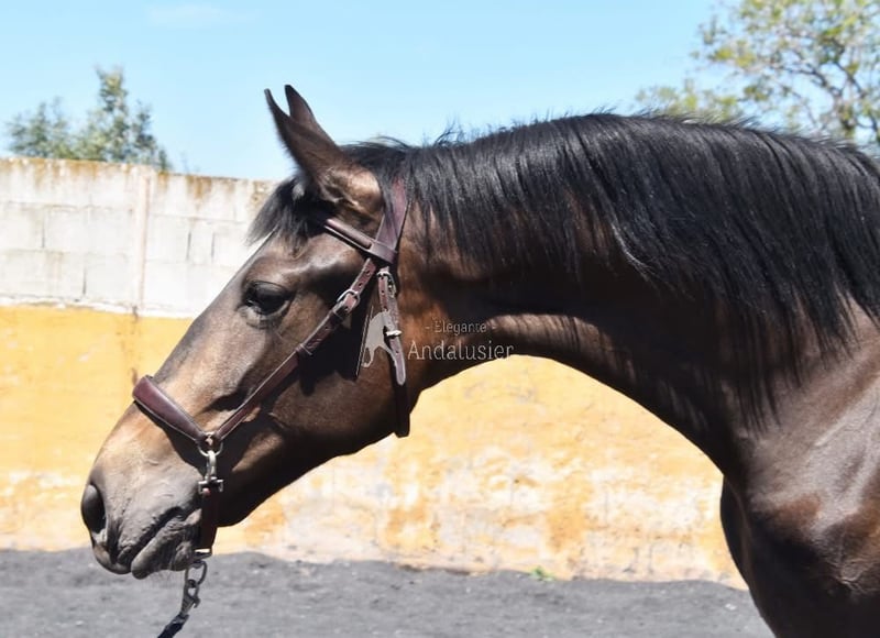 Lieve karakter, nieuwsgierig, ruw, staat met andere merries buiten, speciale kleur, PRE vos met papieren, zeer groot, goede bewegingen en afstamming, Afstamming: Alfredo Gala, Pablo Perez Jimenez, Castillo Villafranca, Andres Holgado Dianes, overgrootvader Mariscal de Torre en overgrootvader Remache XIII zijn gekwalificeerd www.elegante-andalusier.com