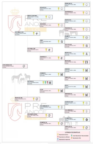 Mogelijkheid om een prachtige en veelbelovende merrie aan te schaffen! Er wordt een mooie PRE te koop aangeboden, van pure ras, geboren in 2024. Het is een merrie met een tobiano-variant van het kleurtype, met een indrukwekkend uiterlijk en een opvallende uitstraling. Ideaal voor wie op zoek is naar een kwaliteitsvol exemplaar met potentieel voor dressuur, rijden of fokkerij. Ze werd geboren met een kastanjekleurige vacht. Toekomstige concoursmerrie. Ze is zeer beweeglijk. Afstamming: Marco Antonio, Velero XI, Deco, Llamativo II, Colombiano III. Ventura Camacho, Granda, Yeguada Militar, Vizconde de la Montesina, Fernández Daza, Urquijo, D. Benito Zoido, Bohorquez. Mis deze kans niet om haar te leren kennen en haar volledige potentieel te beoordelen. Voor meer informatie, neem gerust contact met ons op.