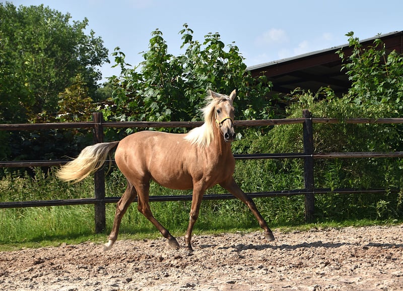 Es fällt uns schwer, unsere Stute Destinada CII zum Verkauf anzubieten. Destinada ist eine junge PRE (Pura Raza Española) Palomino-Stute, die beginnt zu schimmeln. Sie wurde am 16. März 2024 geboren und ist von Mar Wonderful aus Oropesa IV. Ihre Mutter, Oropesa IV, ist eine graue Stute aus dem Zuchtbetrieb Dehesa de Cabeza Rubia. Sie hat hervorragende Ergebnisse bei mehreren prestigeträchtigen Shows in Spanien erzielt, darunter Campeona sec. 5 in Coín, Campeona sec. 3 in Torrejoncillo und Campeona joven del concurso, und sie hat sich auch für SICAB qualifiziert. Ihr Vater, Mar Wonderful, ist unser bewährter Perlino-Hengst, der dafür bekannt ist, seinen Fohlen Stärke, einen mutigen und intelligenten Charakter sowie ein ausgezeichnetes mentales Gleichgewicht zu verleihen. Destinada sollte ursprünglich bei uns bleiben, aber ich habe erkannt, dass ich jetzt zu viele junge Pferde habe und ich nicht zwischen ihnen und meinen geliebten älteren Stuten wählen möchte. Destinada hat vollständige ANCCE-Papiere und ihre Carta. Sie wurde artgerecht aufgezogen, mit angemessener Ernährung, regelmäßigen Hufschmiedbesuchen, Entwurmung und lebt in einer Herde auf der Weide. Sie ist eine sehr anhängliche Stute, die dir wie ein Welpe folgt. Sie ist noch jung und hat viel zu lernen, aber aufgrund von Zeitmangel kann ich ihr nicht die Aufmerksamkeit schenken, die sie verdient.