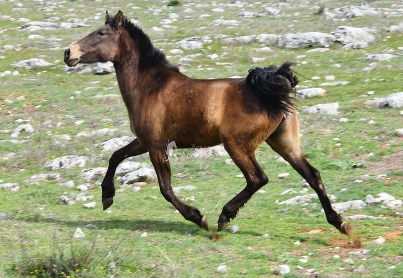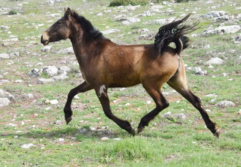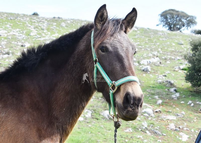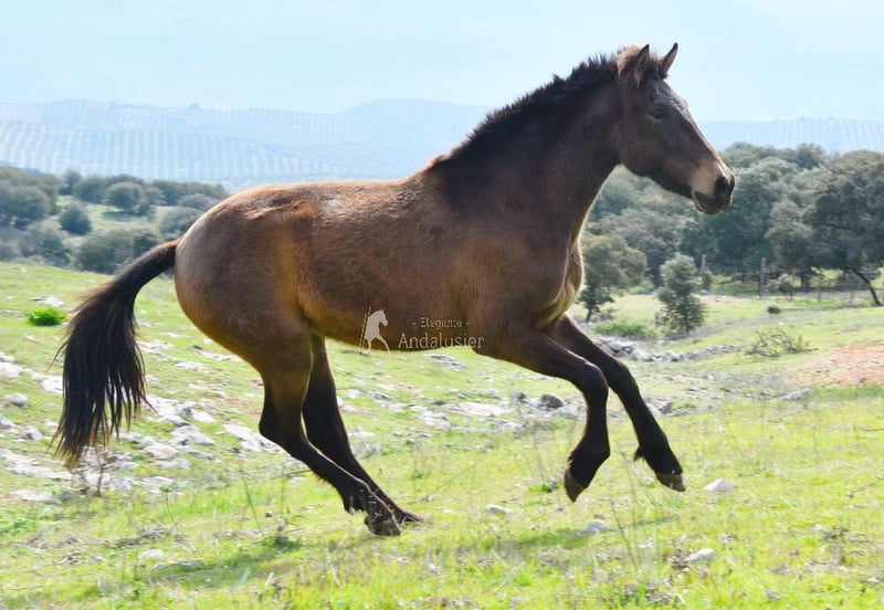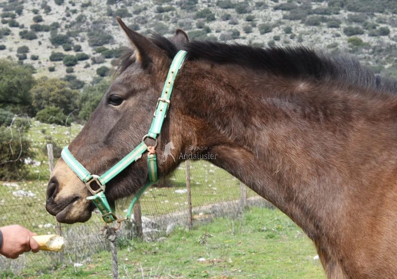 lieber Charakter, roh, steht mit anderen Pferden draußen, spezielle Farbe, Falbe mit PRE Papieren, Abstammung: Paco Marti, Yeguada Jordi Matas Pulido www.elegante-andalusier.com