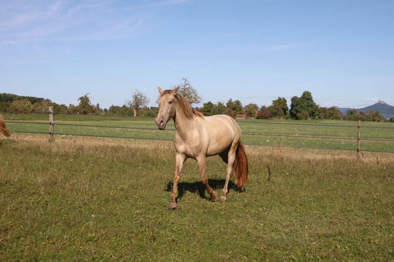Zum Verkauf steht eine wunderschöne PRE-Stute in der seltenen Farbe Doppel-Pearl auf Basis Rappe. Kelea verfügt über einen kompakten, barocken Körperbau und bewegt sich ausbalanciert mit viel Gangvermögen. Das macht sie über das freizeitmäßige Barockreiten hinaus als Dressur- oder Showpferd interessant. Zudem stammt sie mütterlicherseits aus einer seltenen Pearl-Blutlinie, was sie auch für die Zucht wertvoll macht. Ihr Farbgencode ist ggEeaaPrlPrl. Ihr freundliches, menschenbezogenes Wesen macht den Umgang mit ihr unkompliziert. Es liegt ein Züchtercheck mit 14 Röntgenbildern ohne Risikobefunde vor. Kelea ist selbstverständlich regelmäßig entwurmt worden, ist Tetanus grundimmunisiert und war regelmäßig beim Hufschmied.