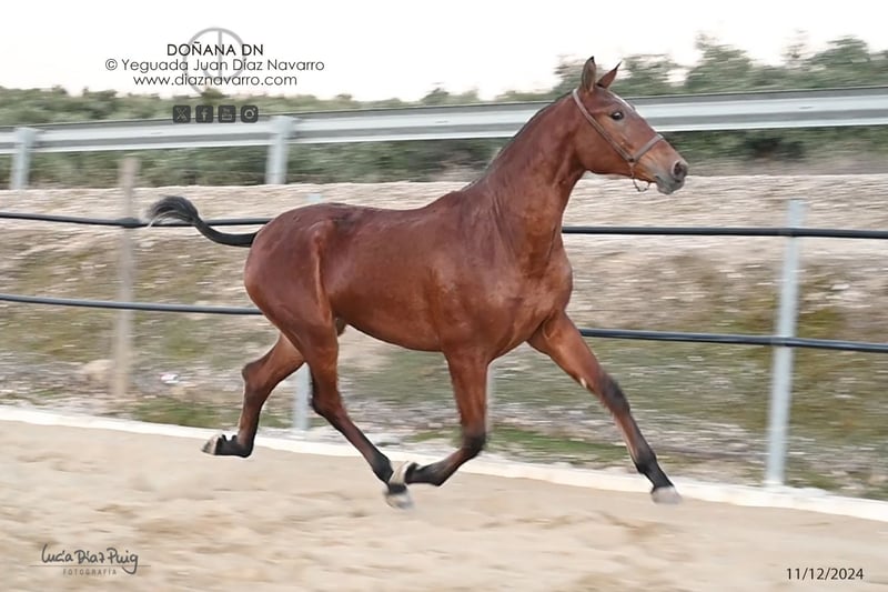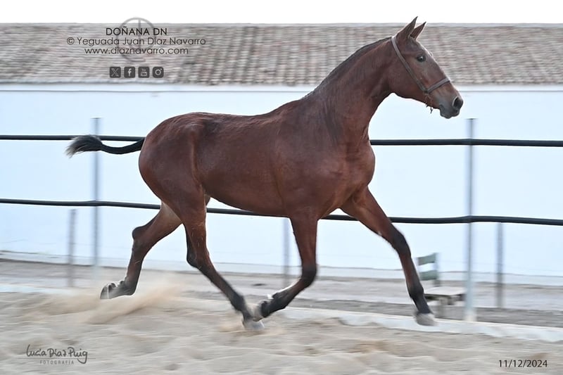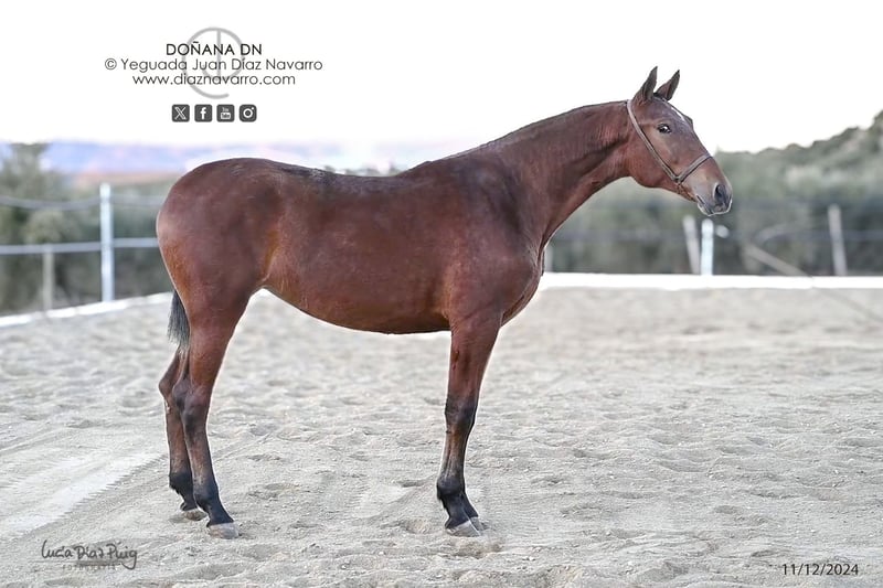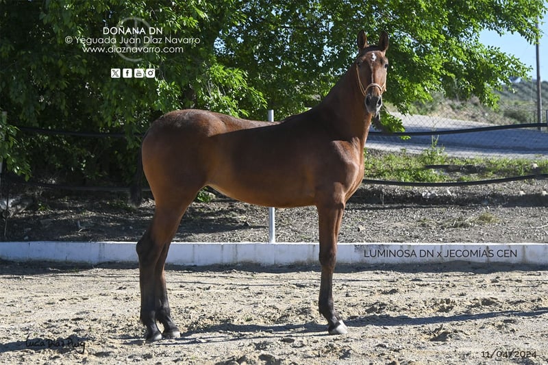 Chance auf den Erwerb einer wunderschönen und vielversprechenden Stute! Zum Verkauf steht eine PRE-Jungstute aus dem Jahr 2023, geboren im selben Jahr, mit einem schönen hellbraunen Farbton. Mit einer Größe von 1,66 m ist sie ein Tier mit edlem und eleganten Genotyp, ideal für Reiter, die Wert auf Qualität und Charakter legen. Sie stammt aus einer exzellenten Blutlinie und vereint Schönheit, Widerstandskraft sowie Potenzial für verschiedene Reitsportarten oder Zucht. Genetische Abstammung (Genotyp): ggAaEeCCNN Dressur: tägliches Training; Schrittmaschine, Dusche… Kommentare: Vielseitigkeits- und Turnierstute, mit großem Erscheinungsbild, viel Höhe und sehr guten Bewegungen. Linien: Marco Antonio, Velero XI, Deco, Llamativo II, Colombiano III. Lovera, Fernández Daza, Centurión, Yeguada Militar, Urquijo, D. Benito Zoido, Bohorquez. Verpassen Sie nicht die Gelegenheit, eine Stute von großem Wert und vielversprechender Zukunft in Ihren Besitz zu nehmen. Für weitere Informationen und Details stehen wir Ihnen gerne zur Verfügung.