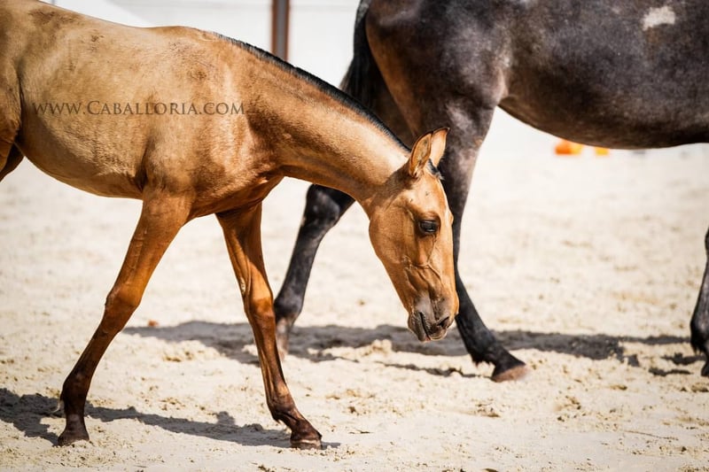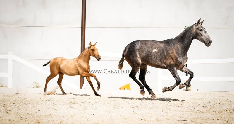 Fohlen: Pura Raza Espanola Stutfohlen In einem strahlenden Buckskin-Farbton geboren, verkörpert dieses junge Fohlen die Quintessenz von Schönheit und Eleganz. Mit einem vollen und beeindruckenden Papier, das ihre edle Abstammung bestätigt, steht sie als Zeugnis für exzellente Pferdezucht. Ihre Bewegungsmuster sind ein wahrer Augenschmaus. Jeder Schritt, den sie nimmt, strahlt Anmut und Kraft aus, was sie zu einer idealen Kandidatin für Dressurwettbewerbe macht. Ihre Eltern, beide großrahmig, haben nicht nur ihre beeindruckende Statur, sondern auch ihr herausragendes Temperament an sie weitergegeben. Dieses Stutfohlen ist nicht nur für die Dressur prädestiniert, sondern auch perfekt zur Zucht geeignet. Mit ihrer genetischen Exzellenz könnte sie die nächste Generation von Spitzenpferden hervorbringen. Für diejenigen, die nach einem zuverlässigen und eleganten Freizeitpartner suchen, bietet sie ebenfalls das perfekte Paket.