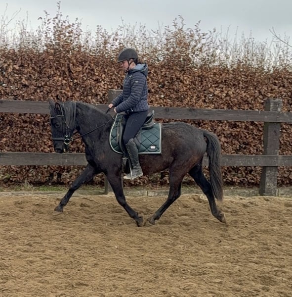 Zum Verkauf steht eine 4 Jahre alte, etwa 153cm große PRE Stute mit voller Abstammung. Sie wurde letztes Jahr bei uns angeritten und zeigt sich nun schon sehr schön unter dem Sattel. Sie geht leicht in Anlehnung und ist brav in allen Gangarten. Einen kleinen Sprung macht sie auch bereits ohne Probleme. Dies kann natürlich noch weiter gefördert werden. Auch im Gelände zeigte sie sich bisher immer brav, cool und gute händelbar. Sie lebt im Offenstall und ist absolut verträglich. Die Box kennt sie aber auch. Wer ein tollen Partner für Sport oder Freizeit sucht, ist bei ihr genau richtig. Krankheiten oder Allergien sind nicht bekannt. Eine AKU darf gerne gemacht werden. Für das Probereiten, Vorreiten oder anderes Ausprobieren des Pferdes berechnen wir 35€. Beim Kauf wird dies gutgeschrieben. Gerne anrufen oder eine Nachricht senden 0157 36803742 Alle Angaben ohne Gewähr, Preisänderungen vorbehalten, Transport möglich, Onlinekauf möglich