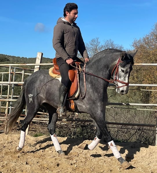 For sale is this charming 3-year-old PRE mare with an approximate height of 15.5–15.6 hh and an excellent pedigree, descending from the lines of Fco. Santiago y Escalera as well as maternal Peralta. She impresses not only with her typical, elegant appearance but especially with her exceptionally good temperament. For her age, she is completely reliable, balanced, and very well-behaved both in handling and under saddle. The mare has been lovingly trained in all three basic gaits, responds beautifully to subtle aids, and listens very well to voice commands. Thanks to her intelligence and calmness, she can even be ridden without a bridle, which highlights her trusting and cooperative nature. Therefore, she is also very suitable as a beginner or riding school horse, although some additional time should be allowed for further physical growth and development due to her age. In daily handling, she always appears friendly, human-oriented, and uncomplicated. A mare that brings joy, trust, and with whom one can work together calmly and confidently. X-rays are available. Please feel free to contact me with videos if genuinely interested.
