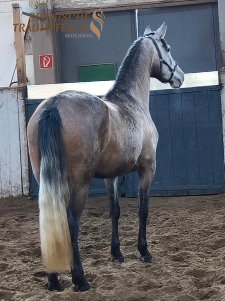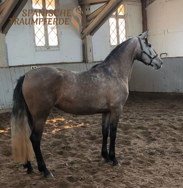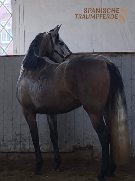Traumstute sucht ❤️-Menschen Diese wundervolle PRE-Stute mit großen, klaren Kulleraugen und einem harmonischen, kompakten Exterieur ist als neues Vermittlungspferd in Traventhal eingezogen. SALMA SH überzeugt mit einem harmonischen rahmigen Körperbau, einer schönen breiten Brust sowie raumgreifenden, elastischen Bewegungen. Besonders hervorzuheben ist ihr lieber Charakter – sie zeigt sich dem Menschen gegenüber sehr zugewandt und freundlich. Mit ihrer Ausstrahlung, ihrem korrekten Gebäude und ihrem angenehmen Wesen bringt SALMA SH beste Voraussetzungen für eine vertrauensvolle Partnerschaft mit. Unsere wunderschöne PRE-Stute SALMA SH ist bereit, in ihr Für-immer-Zuhause einzuziehen. Altersgerecht steht sie noch ganz am Anfang ihrer Ausbildung zum Reitpferd. Sie kennt bereits Sattel und Reitergewicht, läuft fein an der Longe und wird über Bodenarbeit schonend und behutsam an die weitere Arbeit unter dem Sattel herangeführt. Hat man einmal das Herz dieses zauberhaften Wesens erobert, gewinnt man eine treue Freundin fürs Leben – eine Stute, die mit ihrem Menschen durch dick und dünn geht. Röntgenbilder sind vorhanden Standort: 23795 Traventhal Ein Kennenlernen unserer SALMA SH ist nach Absprache nahezu jederzeit möglich. Für diesen Kennenlerntermin aus Bodenarbeit, Spazierengehen, gegebenenfalls Probereiten, nehme ich mir ausreichend Zeit, damit du dein Traumpferd in allen Facetten ganz in Ruhe kennenlernen kann. Dafür berechne ich zum Schutz unserer Pferde und um Reittourismus vorzubeugen eine Pauschale von 50 €.