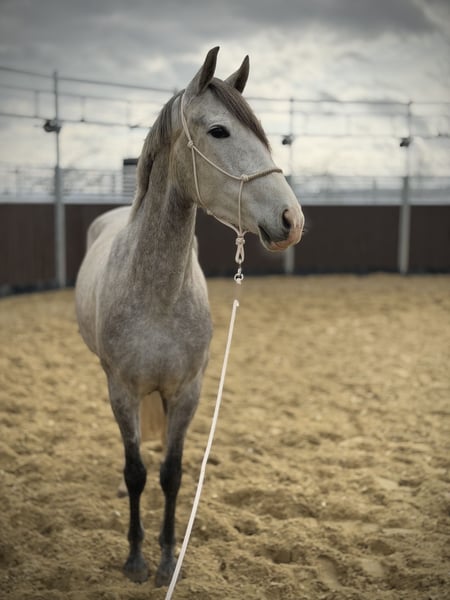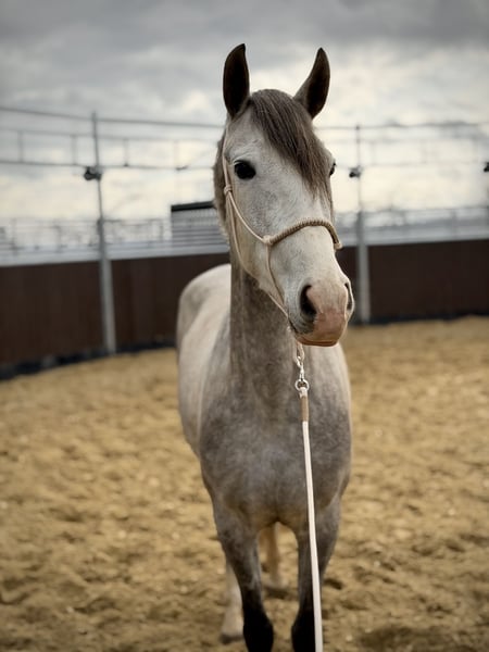 Zum Verkauf steht unsere wunderschöne PRE-Stute Scarlett, eine 4-jährige Apfelschimmelstute mit einem aktuellen Stockmaß von 158 cm. Scarlett ist angeritten und steht noch am Anfang ihrer Ausbildung. Die Grundlagen unter dem Sattel sitzen bereits, sodass nun die weitere Förderung und Ausbildung anstehen. Sie zeigt sich dabei lernwillig, aufmerksam und motiviert, wodurch sie eine tolle Basis für die weitere Arbeit mitbringt. Die Stute wurde von uns selbst gezogen und ist im Zuchtbuch eingetragen. Besonders interessant ist auch ihre Abstammung: Ihr Vater Banduendo ist hoch erfolgreich in der Dressur und gibt seine Qualität und Bewegungsstärke an seine Nachkommen weiter. Scarlett überzeugt mit typischem PRE-Typ, schöner Ausstrahlung und viel Potenzial - sowohl für die Dressurarbeit als auch als vielversprechendes Freizeit- oder Zuchtpferd. Bei weiterer Ausbildung wird sie sicher zu einer tollen Partnerin für ambitionierte Reiter heranwachsen. Bei ernsthaftem Interesse freuen wir uns über eine Nachricht.
