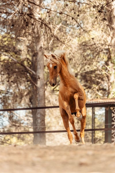 Isabela is a beautiful filly born in August 2022. She has a beautiful shiny palomino color (her mother is a chestnut mare, and the stallion is our chocolate palomino stallion - see last photos) A very lively and cheerful filly. She is very people-oriented, affectionate and loves to be cuddled. The complete foal ABC is no problem for her. Giving hooves, showering, grooming, trailer loading, etc. Very interesting for breeding.