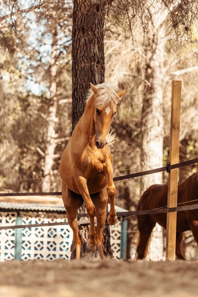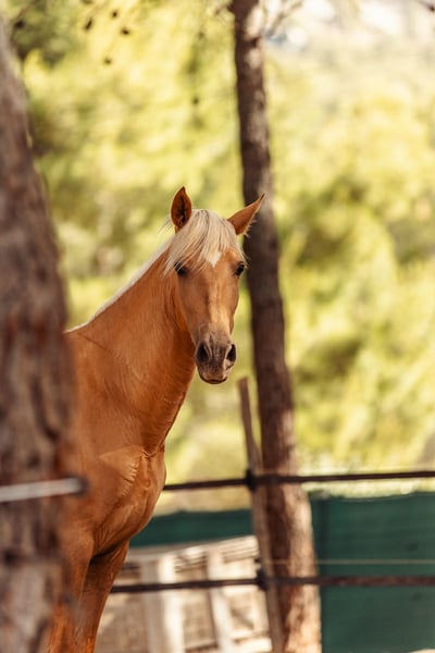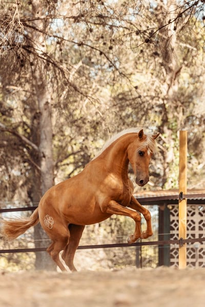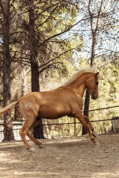 Pouliche née en août 2022. Capa Palomina (mère Sorrel et père Palomino - dernières photos des parents) Une pouliche très vive et joyeuse. Très affectueuse et très tactile.