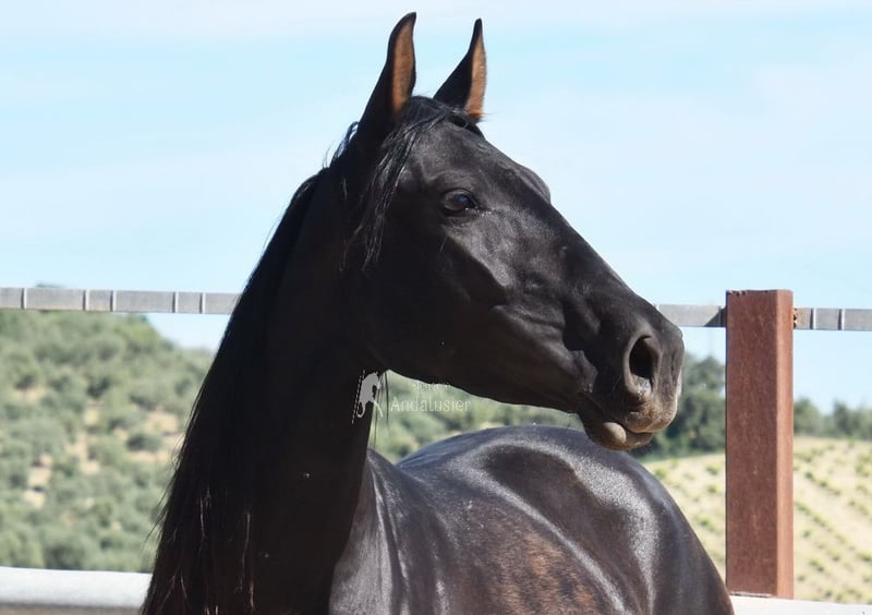 Caractère aimable, à l'état brut, vit dehors avec d'autres juments, bons mouvements et bonne lignée, Ascendance : Hnos Camacho Benitez, Gonzalo Valenzuela Ruiz, Escalera, l'arrière-arrière-grand-père Obcecado est qualifié www.elegante-andalusier.com