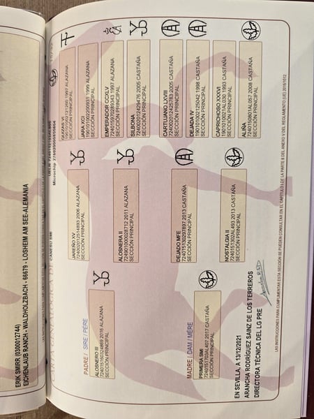 Ich verkaufe meine PRE Stute Canesu SMI (volle ANCEE Papiere) Sie wurde 2021 geboren und ist 1,72 m groß und wäre auch für die Zucht interessant, da viel Wert auf eine dressurmässige Abstammung gelegt wurde. V: ALOSNEROIII>JareñoXV/QuizasVI M: PIMERA SMI > DEJADO MFE>Cartuja LXVIII Canesu wuchs auf sehr großen Weiden, in einem renommierten Andalusier Gestüt im Saarland im Herdeverband robust auf und war bis heute noch nie krank. Das Gestüt ist bekannt für hervorragende, kerngesunde und sehr gut sozialisierte Pferde. Die Pferde werden draußen geboren und bleiben bis zum anreiten (getrennt nach Geschlechtern) auf den weitläufigen Wiesen des Gestüts. Ich habe sie mit 9 Monaten gekauft, eine Ankaufsuntersuchung wurde im Fohlenalter durchgeführt. Eine Lebensversicherung besteht, welche übernommen werden könnte. Canesu ist Tetanus geimpft, Zähne und entwurmen wurden regelmäßig gemacht, sie wurde osteopathisch begleitet und ist Ekzem frei. Canesu wurde im Sommer 2025 schonend am Gestüt angeritten (Bereiterin FN und Trainerin nach Eckard Meyners). Sie zeigte sich während des Berittes schon sensibel und schnell lernend. Sie kennt Longe, Doppellonge, Equikinetic sowie Bodenarbeit / Handarbeit und macht alles sehr brav mit. Sie ist respektvoll und lieb im Umgang und ihrem Menschen zugewand. Kein beißen, treten oder andere Verhaltensauffälligkeiten. Derzeit geht sie Barhuf und trägt bei den Ausritten im Gelände Hufschuhe. Diese lässt sie sich problemlos an- und ausziehen. Traktoren, Autos, Motorräder, Hunde etc. sind für sie kein Problem. Im Gelände, ob allein oder in der Gruppe, kennt sie alle Grundgangarten, Schritt, Trapp und Galopp. In der Halle kennt sie Schritt und Trapp unterm Reiter, der Galopp wurde noch nicht weiter forciert, da sie noch nicht so gut ausbalanciert ist. Sie hat ein gutes Hinterbein und ist mit genügend „Go“ ausgestattet. Der Schritt ist klar im Takt, der Trab raumgreifend. Warum ich dieses wundervolle Pferd verkaufe: Leider finde ich keinen reiterlichen Draht zu ihr. Dies äußert sich in Ungeduld und ausweichen. Dies kann sich dann bei ihr leicht in Spannigkeit und Stress entwickeln und Sie wird nervös. Beim Aufsteigen benötigt sie Ruhe und Vertrauen, im Wald läuft sie entspannter als in der Halle. Ich wünsche mir für Sie einen einfühlsamen, aber auch sicheren Reiter. Aufgrund ihrer Skepsis ist sie nicht für Anfänger geeignet. Aus diesem Grund verkaufe ich Canesu bewusst nur als „longiert und angeritten“ und „kennt Reitergewicht“. Ein Vorreiten durch die Bereiterin wäre nach Absprache machbar (Kostet 50 EUR) Eine aktuelle Ankaufuntersuchung muss vom potentiellen Käufer durchgeführt werden. Das Pferd wird weder zur Probe mitgegeben, noch auf Ratenzahlung. Canesu steht derzeit in der Nähe von Losheim am See/Saarland, beim Züchter. Abstammung ALOSNEROII JareñoXV ALOSNERA II QuizasVI JARA XCI EMPERADOR CCXLV SILBONA PIMERA SMI DEJADO MFE NOSTALGIA II Cartuja LXVIII DEJADA IV CAPRICOSO XXXVI ALINA Standort 66679 Losheim am See, Saarland