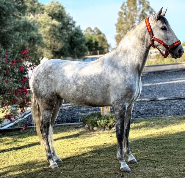 Exceptional and very well-behaved PRE mare looking for her forever home 🏡 This elegant and very beautiful 5-year-old mare is the perfect horse for any situation in life. She impresses with her exceptionally friendly nature and her versatile skills in dressage. She already performs traverses, flying changes, and has a high rideability. Her gait quality is excellent for a mare, and she is always 100% committed to her rider. All bad habits are completely foreign to her. She is incredibly patient, exceptionally well-behaved, and well-mannered. Her stunning gaits make every ride a true pleasure. She also loves hacking and ground work very much. A very gentle young lady who carefully considers her rider’s safety. This beautiful mare shows great potential in dressage and is ideal for ambitious riders seeking a reliable partner. She is well-trained, attentive, and has a promising future in the dressage arena. She is fully registered with ANCCE and is located in Spain near Seville. If you are interested or have any questions, I am happy to assist you. Please arrange a viewing and a test ride. Kindly include your phone number so I can contact you as soon as possible. We have a large selection of carefully chosen quality horses, at all training levels—from foals to Grand Prix. Please contact us if you are looking for something special...