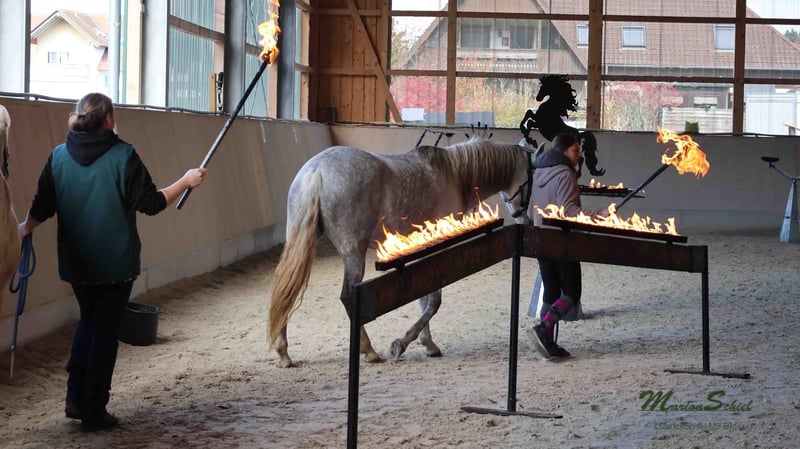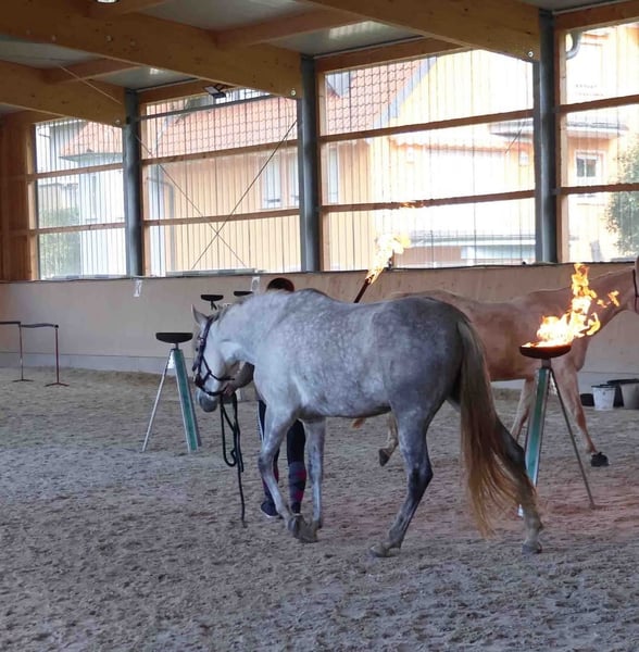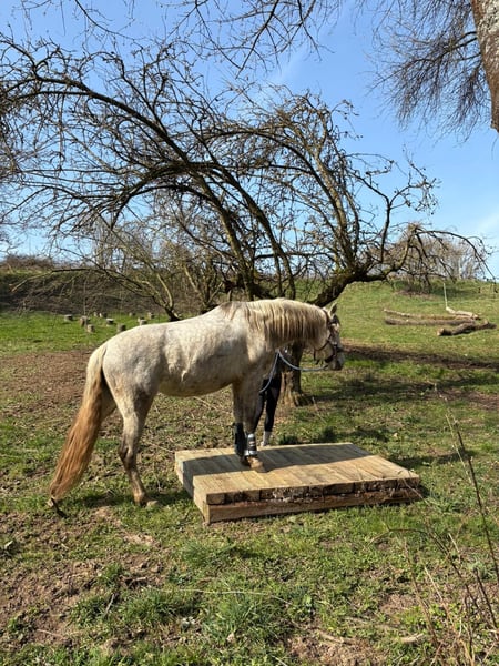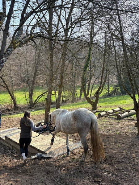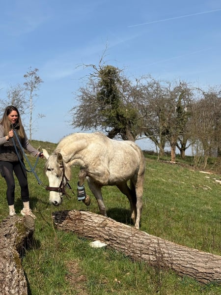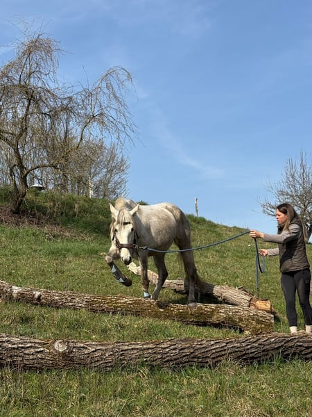 Magnifique jument PRE gris – fiable, courageuse et affectueuse À vendre, une élégante jument PRE née en 2020. Cette jeune dame séduit non seulement par son charisme, mais surtout par son tempérament exceptionnel. C’est une véritable monture de confiance : elle a déjà participé à un stage de feu, maîtrise avec assurance les obstacles en Extreme Trail, et reste toujours calme et sûre d’elle dans le parcours de détente. Partir seule en extérieur ne lui pose aucun problème – elle est parfaitement sûre en terrain varié et fiable. En carrière, elle marche volontiers dans toutes les trois allures et montre une grande volonté d’apprendre et une motivation constante. Elle souhaite plaire à son cavalier et travaille avec attention. Cependant, elle n’est pas recommandée pour un cavalier débutant, car elle souhaite continuer à apprendre et à être stimulée. En main, elle est particulièrement câline, affectueuse et proche de l’humain – une véritable jument de cœur. Un cheval idéal pour tous ceux qui recherchent un partenaire fiable pour la randonnée, la promenade en extérieur et un développement continu. Pour toute question sérieuse, n’hésitez pas à nous contacter !