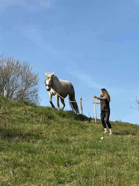 Wunderschöne PRE-Schimmelstute – verlässlich, mutig & verschmust Zum Verkauf steht eine elegante PRE-Stute, geboren 2020. Diese junge Dame überzeugt nicht nur durch ihre Ausstrahlung, sondern vor allem durch ihren tollen Charakter. Sie ist ein absolutes Verlasspferd: hat bereits an einem Feuerkurs teilgenommen, meistert Extreme Trail Hindernisse souverän und zeigt sich auch im Gelassenheitsparcours stets nervenstark. Alleine ins Gelände zu gehen ist für sie kein Problem – sie ist absolut geländesicher und zuverlässig. In der Reithalle läuft sie brav alle drei Grundgangarten und zeigt sich dabei sehr lernwillig und motiviert. Sie möchte ihrem Reiter gefallen und arbeitet aufmerksam mit. Deshalb solltest du aber kein reiner Anfänger sein - die möchte weiterhin lernen und gefordert werden. Im Umgang ist sie besonders verschmust, anhänglich und menschenbezogen – eine echte Herzensstute. Ein ideales Pferd für alle, die einen verlässlichen Partner für Freizeit, Gelände und weitere Förderung suchen. Bei ernsthaftem Interesse freuen wir uns über eine Nachricht!