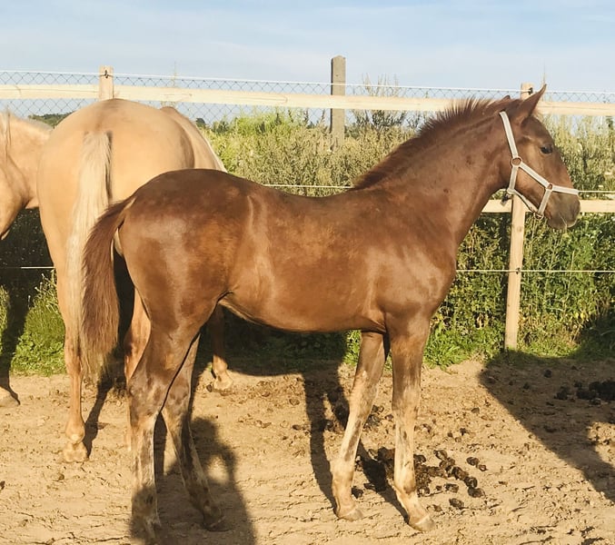 Treidelhof Impresiva is a highly talented mare, she was licensed with a very good evaluation (High breed quality) by the Spanish commission. Impresiva is charming, classic with excellent gait mechanics and movement. A mare that inspires us. Her stm. is about 1.58-1.60m. She is very attentive to people and smart. Nevertheless, she has a balanced, calm interior. Her line is convincing in bullfighting as well as in working riding. She has no trouble learning and is enthusiastic when she is allowed to do something with people and always seeks to please. We are looking for ambitious, loving and supportive hands that always work with the horse in mind.