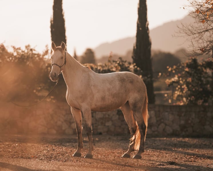 Beautiful 5-year-old mare, directly from the breeder. On the sire's side, she is a descendant of Vagabundo XII, son of the renowned breeding stallion Digital. Her grandsire on the dam's side is Fer Tempranillo. Promesa exhibits very elegant movements. She has been ridden in basic gaits: walk, trot, and canter. Promesa has been dewormed, her teeth have been checked, and she is familiar with farrier work and loading training. We see this young mare as an excellent leisure horse with a focus on dressage. Due to her excellent pedigree, she is also suitable for breeding. For interested buyers, overnight accommodation is available. We are happy to organize transportation.