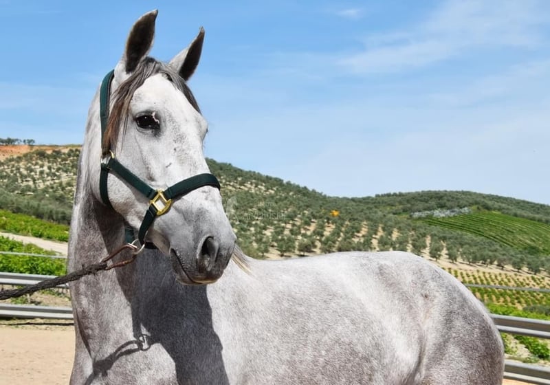 Uprzejmy charakter, surowy, przebywa na wybiegu z innymi klaczami, duży, dobre ruchy i pochodzenie, w ciąży z brązowym ogierem PRE Marques AM II. Cudze źrebię spodziewane na luty 2026. Pochodzenie: Cardenas, Yeguada Militar. Ma kilku wykwalifikowanych przodków. www.elegante-andalusier.com