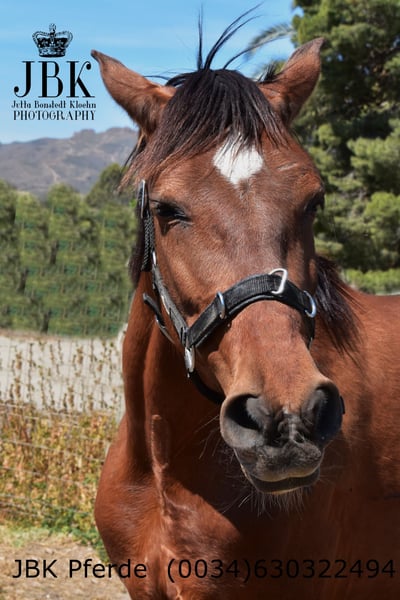 Ich habe hier eine tolle Pre Stute, guckt Euch doch mal diese süsse Schnute an, sie kann echt einmalige Grimassen ziehen. Ein tolles Mädel. Sie kommt aus einem sehr tierlieben Zuhause.Ihre Menschen strahlen Liebe und Wärme aus, haben einen Hof voller Rettungshunde, ein Hausschwein ist auch dort. Leider können nicht alle Pferde behalten werden, es sind noch ältere Pferde auf dem Hof, die ihr Rentnerdasein geniessen und ein Junghengst. Von einem Pferd müssen sie sich trennen. Somit biete ich hier die Stute Caprichosa an. Sie ist geritten in den Gangarten, hatte aber jetzt etwa 1 Jahr Pause aus familiären Gründen. Auch im Gelände war sie regelmässig. Caprichosa hat volle ANCCE Papiere und würde sich auf ein Forever home sehr freuen. Stockmass 1,64 m, 6 Jahre alt.