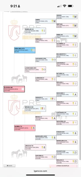 Jument PRE pleine de ventre à vendre à un prix exceptionnel ! Nous proposons ici une jument PRE brute et pleine de ventre. Nous nous en séparons car nous réorganisons complètement nos lignées de reproduction, ce qui explique sa mise en vente. CE N'EST ABSOLUMENT PAS UNE VENTE D'URGENCE ! Elegida est une jument foncée et calibrée, dotée d’un caractère irréprochable. Elle est très proche de l’humain et toujours très attentive. La monte, que nous pouvons également prendre en charge, ne devrait poser aucun problème. Elle est actuellement pleine. Le père du poulain est Maradona, également visible sur les photos ci-dessous. Il est lui aussi présent sur notre élevage et a déjà engendré de nombreux foals. Son tempérament est irréprochable. Ce cheval représente une opportunité exceptionnelle, tant par son prix que par la qualité de ce que l’on reçoit ! Il n’y a absolument rien à redire. Cela s’explique notamment par le fait que tant la jument que le père du poulain disposent d’un pedigree sans faille. De Escalera à Yeguada Militar, tout ce qui a de la renommée et du prestige est représenté. N’étant pas des marchands et aimant profondément nos chevaux, nous ne vendons en aucun cas à des marchands ou des écoles d’équitation. Le prix est hors frais, livraison en Allemagne.