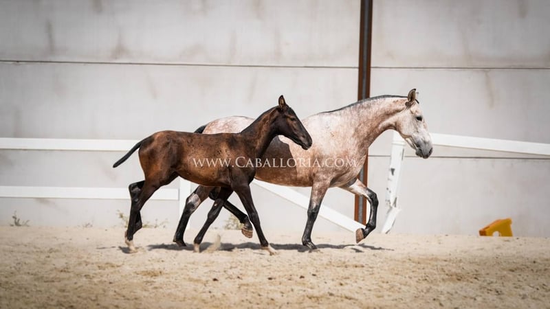 Cría: Nos complace presentarles una impresionante yegua gris roja PRE del año 2019. Con una altura actual de 164 cm, impresiona no solo por su impresionante tamaño, sino también por su genética única. Es portadora de un gen de perla, una genética de color rara y codiciada que la convierte en un verdadero punto de atracción. La yegua se muestra en hermosas líneas barrocas, típicas de la raza PRE. Su aspecto musculoso, combinado con movimientos elegantes y expresivos, la convierten en una opción ideal para los cultivadores. Sus andares son fluidos y armoniosos. Para aquellos que buscan un caballo joven que esté dispuesto a aprender y crecer con ellos, ofrecemos la posibilidad de comprar la yegua ya montada por un cargo adicional. Esto no solo le da un caballo valioso para la cría, sino también un caballo que ya ha adquirido algo de experiencia en el trabajo bajo silla. Por último, nos gustaría destacar que esta yegua gris roja PRE no solo convence por sus cualidades externas, sino también por su carácter equilibrado y amistoso. Siempre está dispuesta a aprender y es cooperativa, por lo que es una opción maravillosa tanto para los criadores ambiciosos como para los amantes de la raza PRE. Aprovecha la oportunidad y conoce mejor esta joya. Un caballo que sabe convencer en todos los aspectos con su colorido, sus andares y su carácter.