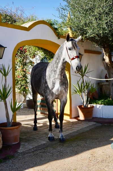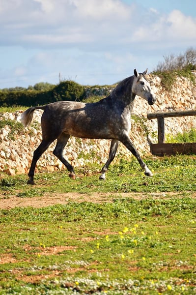Cavalla spagnola torda, compirà 8 anni. Ottima cavalla da monta, ha già prodotto una cucciola incredibile. Ideale per continuare a riprodurre, con ottima conformazione e carattere.