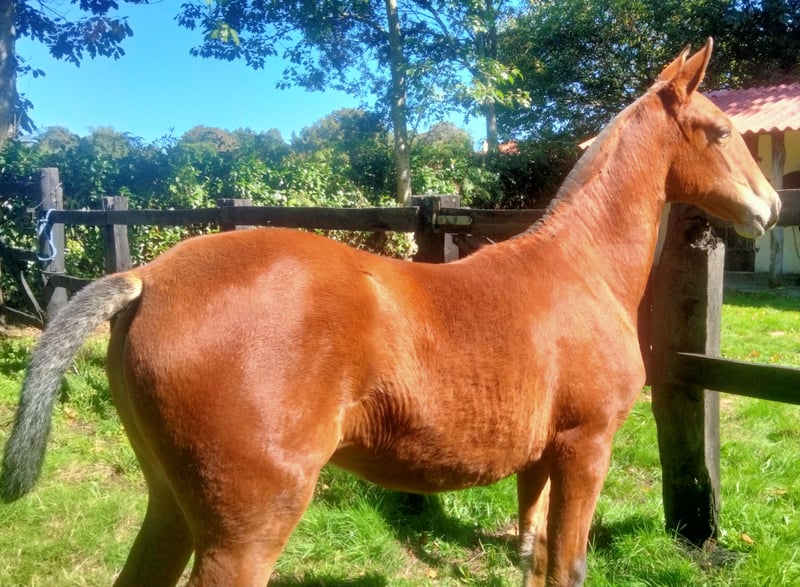 PRE foal, granddaughter of UTRERANO VII (elite) on the father's side and of CARTUJANO LXVIII (Sicab champion) on the mother's side (MFE). Very good character, excellent conformation and movement. For more information, please contact.