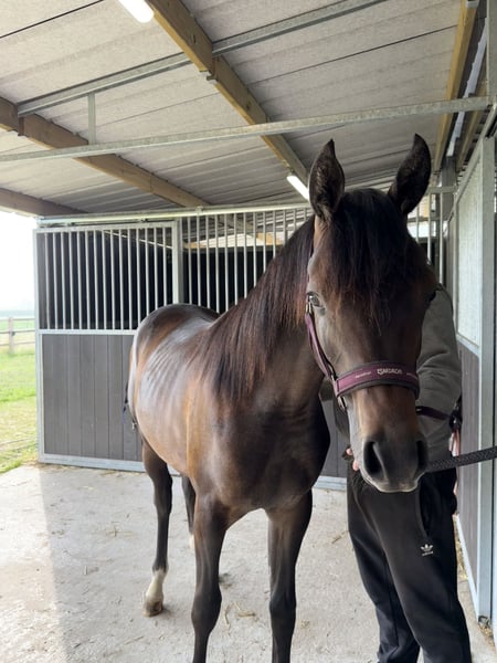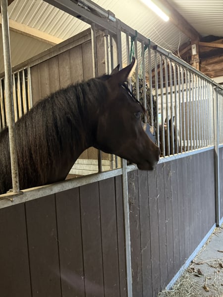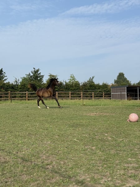 Naasir is een uitzonderlijk lieve en charismatische tweejarige ruin (2024) die alles in zich heeft om uit te groeien tot een fantastisch familiepaard én een paard waarmee je later nog alle kanten uit kan. Hij combineert een correcte, sterke bouw met een prachtige uitstraling en een nuchtere mentaliteit. Daarnaast beschikt hij over een bijzonder interessante pedigree: Muranas Nader x Rector’s Calista (v. QR Marc). Hij is CA en SCID clear. Wat Naasir echt speciaal maakt, is zijn karakter. Hij is sociaal, vriendelijk en niet dominant in de groep. Een paard dat graag contact zoekt, altijd nieuwsgierig blijft en vooral geniet van mensen. Hij staat steevast als eerste aan de poort om je te begroeten en is niet snel onder de indruk van nieuwe situaties. Dit is een ideale basis voor een paard dat je met vertrouwen verder kan opleiden. Naasir beschikt over BAPS-papieren, is volledig in orde met vaccinaties en ontworming, en kent alle basishandelingen: ✔️ Wassen ✔️ Borstelen ✔️ Vaststaan ✔️ Hoefsmid ✔️ Dagelijkse omgang aan de hand Naasir zal de komende jaren verder uitkleuren naar een donkere schimmel. Van dichtbij zie je de eerste grijze haren al mooi doorkomen. Naasir is een jonge ruin met een hart van goud en een uitstraling die je bijblijft. Hij is klaar om verder op te groeien bij iemand die hem de tijd, aandacht en liefdevolle begeleiding geeft die hij verdient.❤️ Handelaars hoeven niet te reageren. 📩 Interesse of wil je meer weten? Stuur gerust een berichtje voor extra info, foto’s of video’s.
