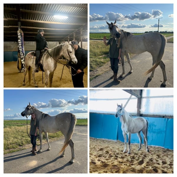 See translation FOR SALE: EPHORUS (aka AJ) English 3.5-Year-Old Grey Arabian Wallach | 1.65 m Ephorus is an elite athlete standing at a remarkable 1.65 m. Currently in professional training and successfully started under Western saddle, he combines a massive frame with world-class heritage. He is a premier prospect for Western Pleasure, breeding, or Sport Horse disciplines. Deutsch 3,5-jähriger Schimmel-Araberhengst | 1,65 m Ephorus ist ein Ausnahmeathlet mit einer beeindruckenden Größe von 1,65 m. Er befindet sich aktuell in Profi-Beritt und ist bereits Western angeritten. Durch seinen korrekten Rahmen und seine Weltklasse-Abstammung ist er ein erstklassiger Kandidat für Western-Sport, Zucht oder Sportpferde-Disziplinen. Detailed 4-Generation Pedigree / Detaillierter Stammbaum Sire Side / Vaterlinie: AJ Azzam Sire: AJ Mardan (Vervaldee x Felicia RLC) Dam: Ysadora (Marwan Al Shaqab x Ysabela) Paternal Grandparents: * Vervaldee (Versace x Giavanna) Felicia RLC (Shael Dream Desert x Camelia K) Maternal Grandparents: Marwan Al Shaqab (Gazal Al Shaqab x Little Liza Fame) Ysabela (Parys El Jamaal x EA Moongypsy Echo) Dam Side / Mutterlinie: Emfiria Sire: Emarc (QR Marc x Eksterna) Dam: Elowacja (Sebastian x Elhena) Paternal Grandparents: QR Marc (Marwan Al Shaqab x Swete Dreams) Eksterna (Monogramm x Ernestyna) Maternal Grandparents: Sebastian (Europejczyk x Savvannah) Elhena (Probat x Elana) Highlights: Exceptional Height: 1.65 m Elite Bloodlines: Featuring Marwan Al Shaqab, QR Marc, and Monogramm. Current Status: Started Western; currently in professional training.