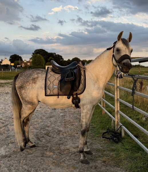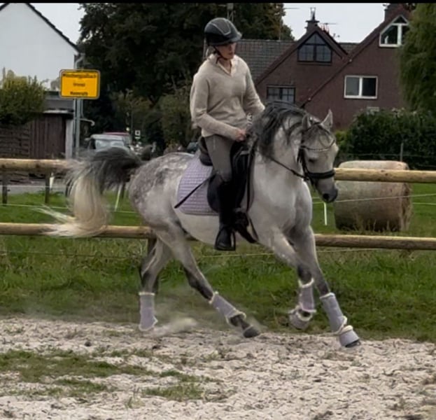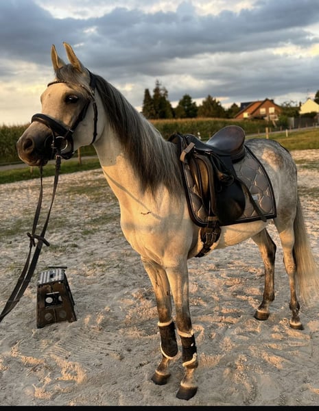 Traumhaft schöner Wallach mit netter Abstammung sucht ein neues Zuhause INSHA ELCAAN OX ist ein 5-jähriger, ca. 1,48 m großer Wallach, der nicht nur durch sein elegantes Erscheinungsbild überzeugt, sondern auch durch seinen verspielten und verschmusten Charakter. Er lässt sich sehr fein reiten, reagiert sensibel auf die Hilfen und zeigt besonders in der Dressur seine Stärke. Elcaan arbeitet motiviert mit, lernt schnell und bereitet seinem Reiter stets Freude. Auch im Gelände ist er absolut zuverlässig und geht problemlos alleine. Für Reitanfänger sowie Wiedereinsteiger ist er ebenfalls gut geeignet. Aktuell steht er im Stall, verbrachte jedoch den Sommer über 24/7 auf der Wiese. Mit anderen Pferden ist er sehr verträglich. Vorne ist er beschlagen. Seine Zähne wurden frisch gemacht und er wurde osteopathisch behandelt. Ein Pass mit Abstammung ist selbstverständlich vorhanden. Bei weiteren Fragen stehe ich Ihnen gerne zur Verfügung. Liebe Grüße