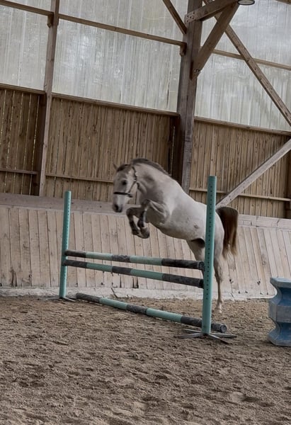 Oferuję na sprzedaż wspaniałego konia w wieku 4 lat, wkrótce 5 lat (kwiecień 2026), kucyka ogierka, o wysokości 1,58 m w kłębie i nadal rosnącego, z wzorowym charakterem i prawdziwą chęcią do nauki. Koń jest niezwykle przyjemny na co dzień, blisko związany z człowiekiem, pełen szacunku i uwielbiający, gdy się o niego dba. Został zaprzężony tego lata i spokojnie rozwija swoją edukację: jest zawsze regularny, skupiony i chętny do pracy. Wszystkie trzy chodowe są opanowane, czyste i regularne. Koń jest bardzo uważny, szczery i łatwy do kontrolowania. Rozpoczyna prace na ujeżdżalni: praca nad przesunięciami bocznymi jest w trakcie nauki, ale wykazuje dużą zrozumienie, powagę i zaangażowanie. Na lonży wychodzi samodzielnie lub w towarzystwie, bez stresu i obaw. Podczas jazdy w terenie zachowuje się doskonale. Rozpoczyna skoki przez przeszkody, jest szczery, chętny i zawsze gotowy do dobrej pracy. W wolnej stajni już pokonał wysokość 1,20 m. Nie jest jeszcze „wysokim skoczkiem”, ale pokazuje dużo serca, technika się poprawia, a jego mental jest bardzo zdrowy. Posiada wszystkie cechy, by rozwijać się w amatorskim skokach przez przeszkody i rekreacji sportowej. Posiada również interesujące papiery dla osoby poszukującej wszechstronnego konia arabskiego do sportu, z finezją i dużym charakterem. Ten koń ma wszystkie cechy, by stać się doskonałym partnerem sportowym, niezawodnym i przyjemnym dla jeźdźca, który szuka młodego konia z dobrym charakterem i gotowego do rozwoju. Ten piękny szary koń zasługuje na poważny dom; prosimy o powstrzymanie się od kontaktu osoby niezaangażowane.