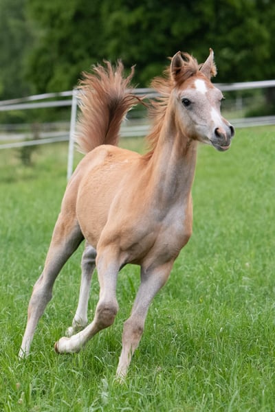 Macallan ist so konstruiert, dass er als Reitpferd leicht Last aufnehmen kann, mit einer optimalen Verbindung von Nierenpartie zur Kruppe. Er ist korrekt mit starken Gelenken, taktreinen Bewegungen, seine Bewegungen kommen frei aus der Schulter mit viel Raumgriff. Mit diesen Sätzen wurde er anlässlich der Fohlenprämierung beschrieben. Er wächst in einer Herde mit 5 Stuten und Fohlen auf großen Weiden auf. Im Sommer ganztags draußen. Sein Vater A Magic Man of Kossack hat mit seinen 30 Nachkommen mittlerweile bewiesen, dass er ein optimales Gesamtpaket durchschlagend vererbt. Alle Fohlen sind ausgesprochen ausgeglichen und arbeiten gerne mit. Sie sind grossrahmig, harmonisch mit ausgesprochen guten Beinen. Magic Man ist Verbandsprämienhengst, wurde zwei Jahre hintereinander bestbewerteter Hengst des Verbandes. Mittlerweile hat er 20 prämierte Fohlen. 2025 wurde er Seniorchampion der VZAP Zuchtschau in Kranichstein. Selbstverständlich können unsere Fohlen zur weiteren Aufzucht bei uns bleiben, auch wenn die schon einen neuen Besitzer haben. Das Video zeigt die gesamte Herde in den frühen Morgenstunden. Es soll einen Eindruck vermitteln davon wie unsere Fohlen aufwachsen. Fotos Sabrina Geisel, Marixx Film & Fotografie, Maria Sens